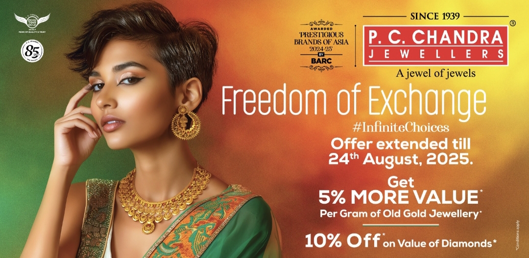 Durgapur, August 21, 2025 – With gold prices at an all-time high, P.C. Chandra Jewellers (https://pcchandraindia.com/) introduces a timely and rewarding offer for its valued customers. The brand’s exclusive ‘Freedom of Exchange’ offer allows customers to exchange their old gold jewellery and receive 5% extra value per gram—a unique initiative crafted to help customers make the most of their existing gold.